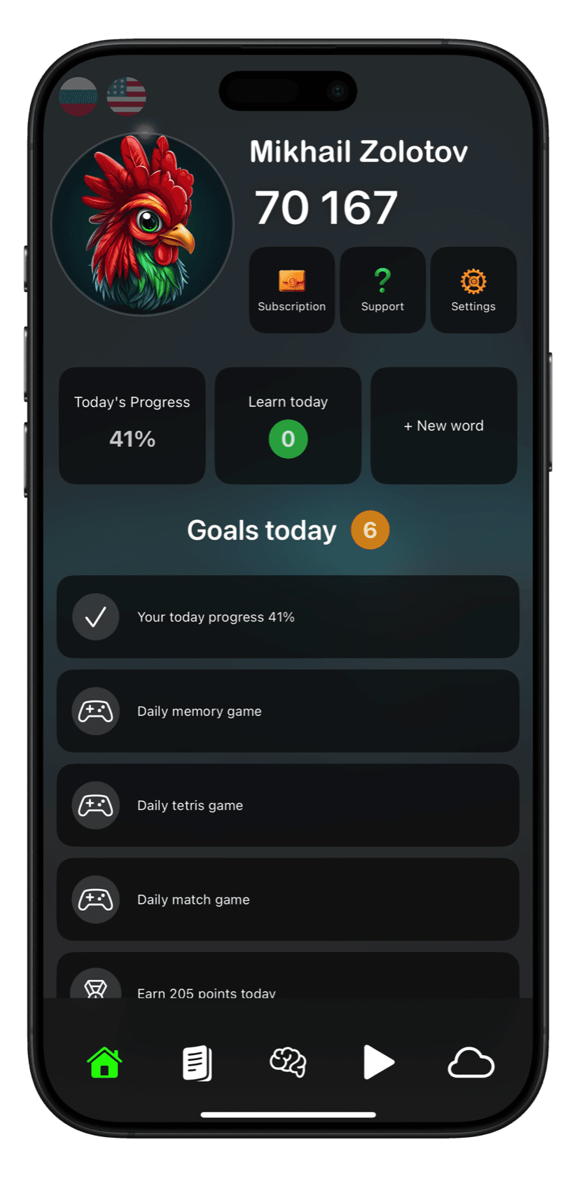 Set daily goals for words to add and remember, points to earn, or audiobooks to complete.